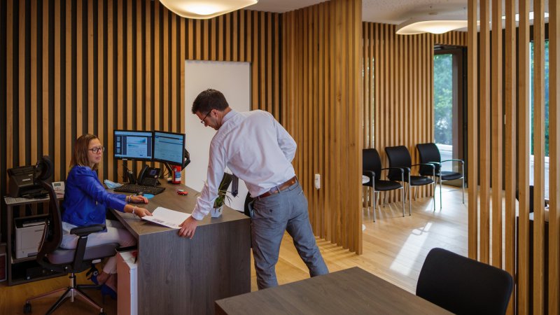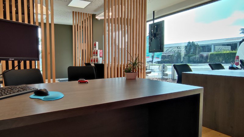 Tout en renforçant la proximité, le lieu dispose d'un espace d'accueil spacieux et convivial. Sa situation sur un axe dynamique de la ville favorise pour ses sociétaires le côté pratique, et met à leur disposition des places de parking, juste devant !