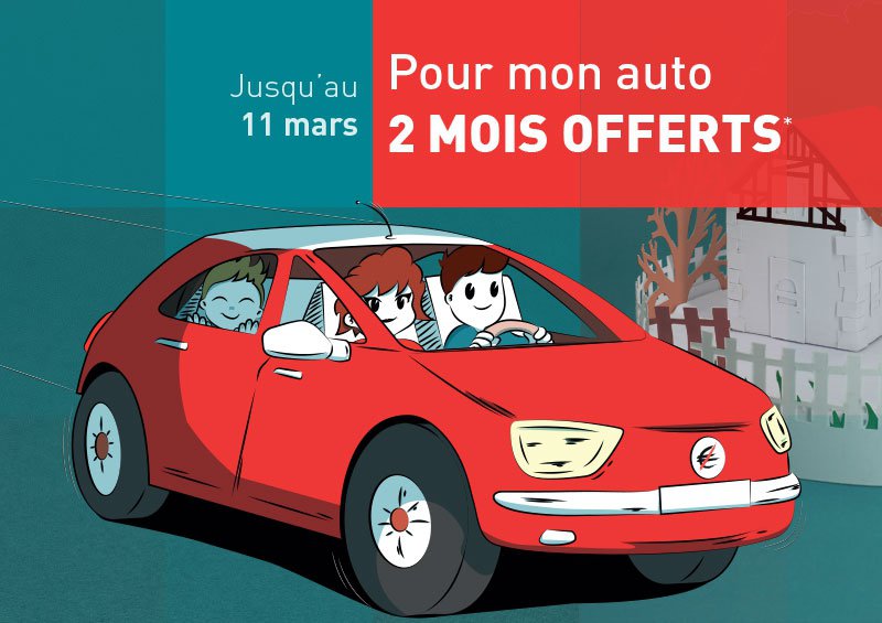 En ce début d'année, nous vous invitons à faire «le plein de garanties et d'économies» en profitant, pour vous-même ou pour vos proches, de l'offre promotionnelle «2 mois offerts*» à la souscription d'un nouveau contrat auto.
