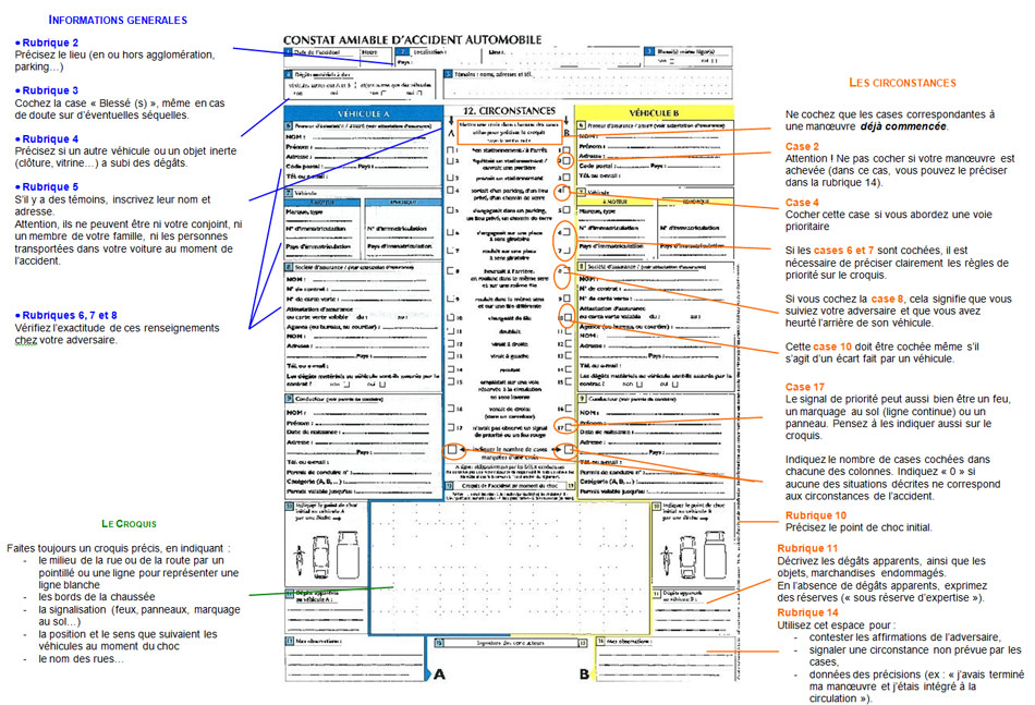 Il est également nécessaire de remplir avec soin toutes les rubriques figurant au verso du constat : elles permettent à l'assureur de recueillir des informations complémentaires et indispensables à la gestion du dossier.